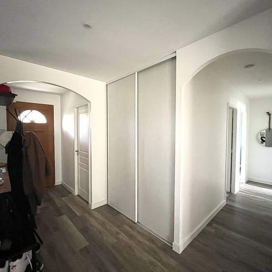 (GA) Côté Particuliers vous propose une maison T4 comprenant une entrée avec placard, un salon-séjour avec poele à bois, une cuisine ouverte et équipée (hotte, plaque), un dégagement donnant sur trois chambres avec placards, une salle de bains et un wc séparé. La maison dispose d'un garage, d'une terrasse couverte et d'une piscine avec un pool house Disponible le 21/01/2026