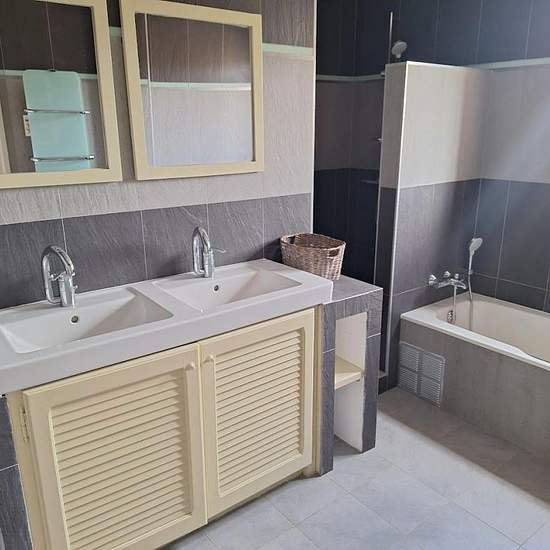 Nous vous proposons à la location une belle villa provençale meublée de 5 pièces à Pégomas d'environ 105 m² avec jardin clos et piscine. En très bon état, elle est composée au rez-de -chaussée d'une entrée, d'une salle à manger avec cheminée donnant sur une grande terrasse, un salon, une cuisine aménagée et équipée ainsi qu'une salle d'eau avec WC. À l'étage, 3 belles chambres avec placard, un wc séparé et une salle de bains. Climatisation réversible. Jardin arboré d'olivier et citronnier. Loyer = 2 350€ + 150€ de charges (provision TEOM et ...