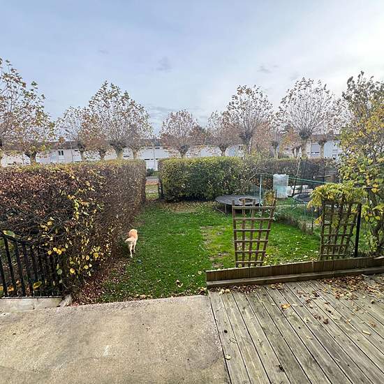 jolie maison semi individuelle offrant hall d'entrée, séjour, cuisine meublée et wc en RDC. A l'étage 3 chambres et salle de bains. Sous-sol, garage et terrain. Disponible au 1er février 2026
