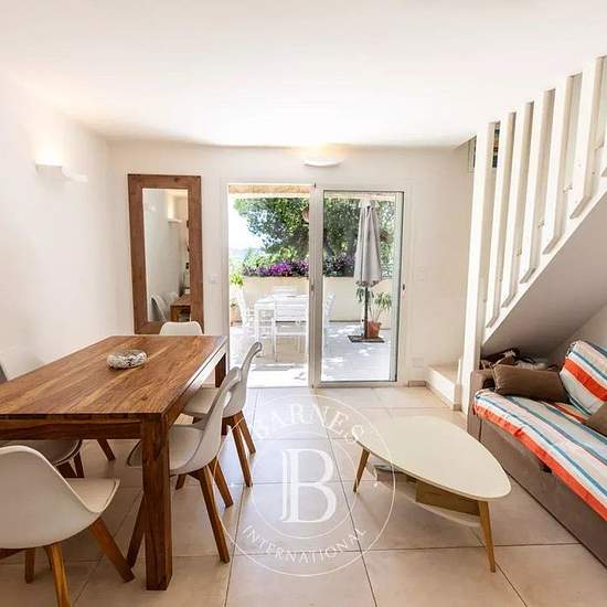 RL426 – Domaine de Cala Rossa Idéalement situé à l’entrée du prestigieux domaine de Cala Rossa, cet appartement d’environ 61 m², à seulement quelques pas de la plage, constitue un véritable havre de tranquillité. Décoré avec simplicité et chaleur, il offre un séjour/salle à manger lumineux, une cuisine indépendante entièrement équipée, 3 chambres, une salle de bains et une salle de douche. L’espace de vie s’ouvre sur une terrasse avec vue mer, idéale pour savourer des moments de détente. Services inclus : ménage complet, linge de maison, lin...