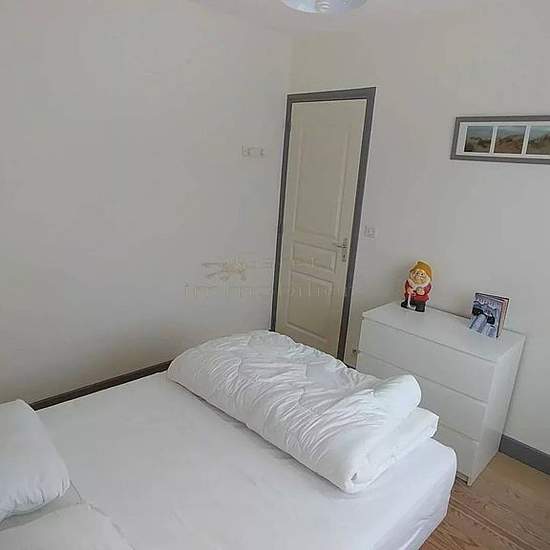 Maison face mer à Quend plage, comprenant : un séjour donnant accès sur une terrasse face mer, une cuisine donnant accès à un jardin, une chambre au Rez de chaussée avec lit 140x190, une salle de douche avec toilette et à l’étage: 2 chambres avec 2 lits 140x190.
