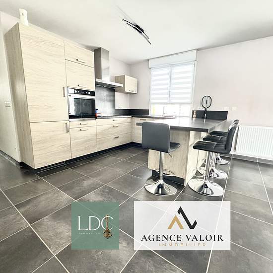 Available for rent in REMERING-LES-PUTTELANGE: 5 minutes from the A4 motorway entrance toward METZ and NANCY. This detached house located on a quiet cul-de-sac comprises an entrance with a closet, a large living area with an open kitchen and direct, level access to the outside. A hallway leads to 3 bedrooms, a bathroom with a bathtub and a walk-in shower, and a separate toilet. Full basement with a double garage with side-by-side bays, electric door with remote control. An alarm system and remote monitoring. Verxsur can be removed or left in...