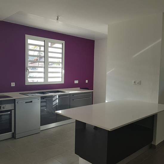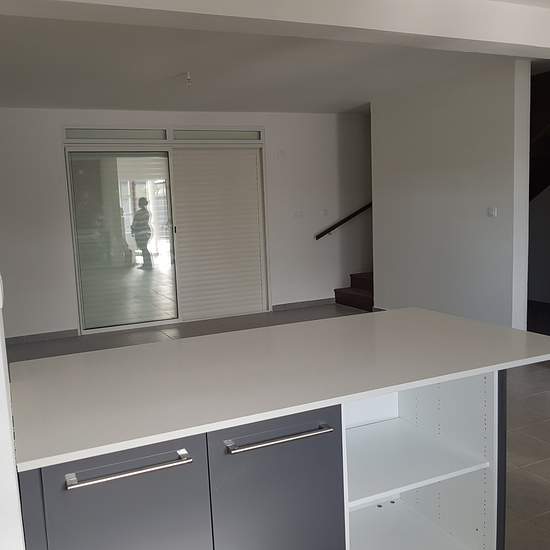 Villa individuelle en duplex T4 de surface thab de 102 m2 située dans un lotissement 'les Heliconisas' proche de la mairie de Montjoly dans le secteur de Morne Coco comprenant: Au rez de chaussée: un porche, une cuisine aménagée et équipée (plage, four, lave vaisselle) avec ilot central, un debarras, une salle de bain ( wc, lavabo, douche), une terrasse.un jardin A l'étage: un dégagement, une salle de bain indépendante, deux chambres climatisées avec placards , un suite parentale avec salle de bain , un dressing, une chambre climatisée. Nous...