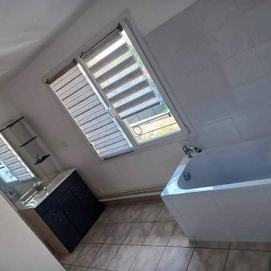 Loue maison de ville Rdc: 1 pièce à vivre + cuisine / 1 salle de bain douche WC Au 1er étage: 3 chambres 1 salle de bain baignoire WC + placards Au 2eme etage: grenier avec VMC Chauffage individuel au gaz. Chaudière datant de 2020. Entretien chaudière et VMC tous les ans. Terrasse + débarras à l'extérieur