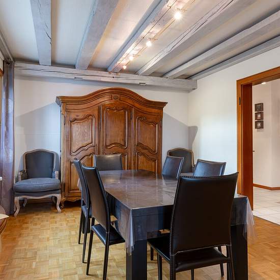 Maison meublée à Ribeauvillé - Route des vins Charmante maison de 130 m² (environ 150 m² au sol), entièrement meublée et équipée. Elle comprend une entrée, un salon et une salle à manger lumineuse donnant accès à la terrasse, une cuisine indépendante entièrement équipée, 2 spacieuses chambres, 2 salles de bains (une à chaque niveau), 2 WC indépendants, une grande buanderie et balconnet offrant une vue dégagée sur la Forêt Noire. Vous disposerez également d'un espace extérieur d'environ 45m² avec terrasse et jardinet ainsi que 2 places de par...