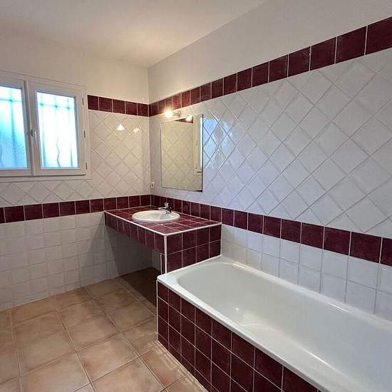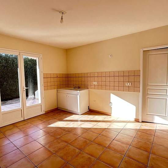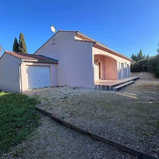 House in Rognonas — 4 rooms, 120 m². Rognonas, residential neighborhood: beautiful villa of approx. 120 m² on about 400 m² of garden. Large living room (40 m²), separate kitchen, 3 bedrooms (one with a shower room), a bathroom, a toilet. Garage. Quiet neighborhood. Available end of January 2026.