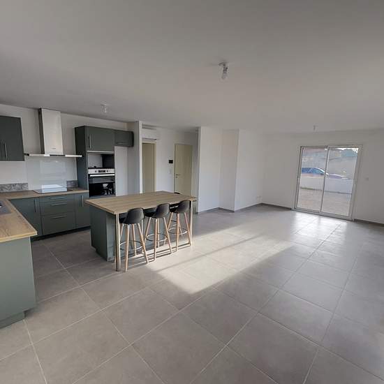 Découvrez à la location cette superbe villa neuve située sur la commune de Sémalens (81570), offrant environ 96 m2 habitables entièrement de plain-pied. Vous serez séduit par sa cuisine américaine équipée, ouverte sur un salon-séjour lumineux, créant un espace de vie convivial et moderne. La maison dispose de nombreux rangements, avec un cellier, une buanderie aménagée, ainsi que des placards intégrés dans chacune des trois chambres. La salle d'eau, contemporaine et fonctionnelle, complète l'ensemble.À l'extérieur, la propriété se distingue ...