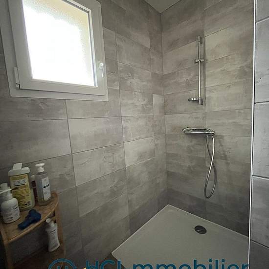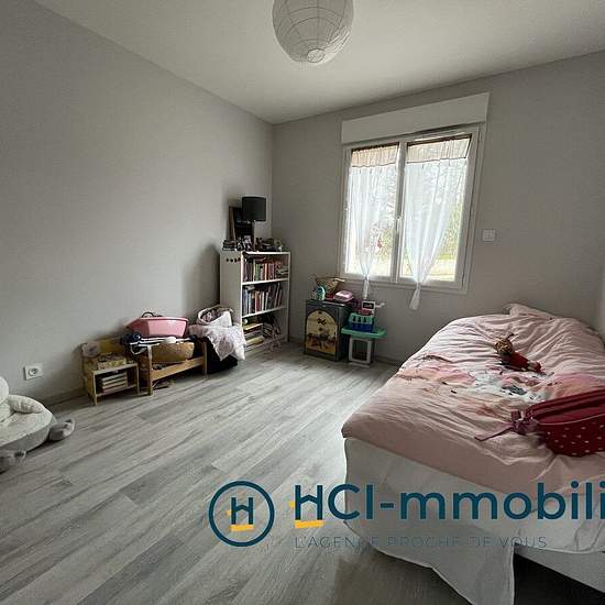 Maison de plain-pied construite en 2022 d'environ 87 m² habitables. Elle se compose d'une entrée, d'une agréable pièce de vie avec cuisine ouverte aménagée et équipée (four, plaque de cuisson et hotte), d'une buanderie, de trois chambres, d'une salle d'eau ainsi que d'un WC indépendant. La pièce de vie bénéficie d'un accès direct à la terrasse et au jardin, offrant un espace extérieur convivial et fonctionnel. Un cellier d'environ 8 m², accessible depuis le jardin, vient compléter l'ensemble. Chauffage au sol. Disponible à partir du 11 mars ...