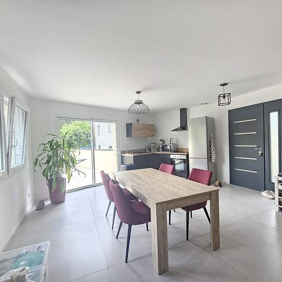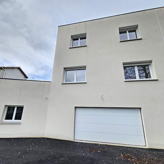 LM2804 SORBIERS - Grand quartier / Maison neuve type 4 de 84 m² mitoyenne sur un côté. Toit terrasse. Elle est composée d'une entrée, un grand salon/séjour ouvert sur cuisine US avec accès à une terrasse orientée sud, un cellier, un toilette. A l'étage 3 chambres ainsi qu'une salle de douche avec toilette. Grand sous-sol d'environ 65 m², garage double motorisé. Chauffage par pompe à chaleur par le sol. Menuiseries : Double virage PVC, volets roulants électriques Honoraires agence : 900 € dont 252 € d'état des lieux Charges mensuelles : 20 € ...