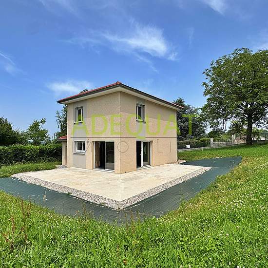Saint-Didier-de-la-Tour — very recent house of 90.75 m² of living space, comprising on the ground floor a large living room with open fitted kitchen and a toilet. On the first floor: 3 bedrooms with built-in wardrobes and a bathroom with toilet. Attached, insulated garage with a motorized door. All on a 580 m² plot, including 2 southwest-facing terraces. Features: electric radiator heating, electric roller shutters, eligible for fiber optic... Available beginning of March. For more information, contact Solène DEBIEZ 06x45x13x38x55. Informati...