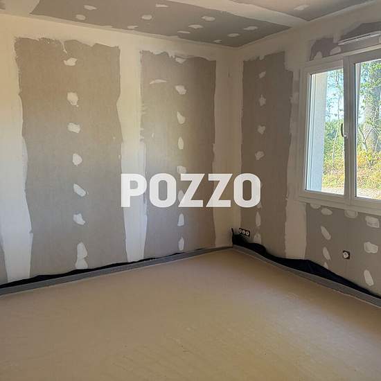 POZZO IMMOBILIER vous propose une maison neuve de plain-pied à louer, comprenant une cuisine aménagée équipée, un séjour avec un poêle à granulé, 3 chambres, une salle d'eau, un WC et une buanderie. Chauffage au poêle à granulé, compteurs individuels. Terrain Entretien VMC + Poêle dans les charges.
