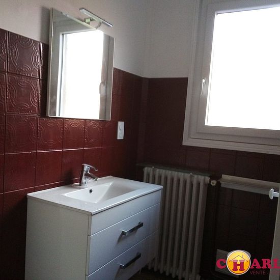 ST JUNIEN CENTRE ( très proche commerces et écoles) Maison de ville T4 au 1er étage d'un immeuble avec locaux professionnels au rdc Cuisine aménagée et équipée: plaques, four, grand séjour de 32 m2 avec Balcon 3 chbs , salle d'eau , WC, nombreux rangements A l'arrière au calme et sans vis à vis, grande terrasse et jardinet. Au rdc: grand garage, buanderie et cave. chauff gaz de ville Maison de ville très lumineuse et en parfait ETAT Libre début Juillet er contact uniquement par téléphonne A VISITER Honoraires de 816 € TTC à la charge du loca...