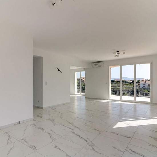 A propos de ce bien - LOCATION VIDE à l'année - Disponible au 15 JANVIER 2026 Splendide villa totalement rénovée de plain pied située dans le quartier résidentiel des Plateaux fleuris à Saint Laurent du Var, belle vue mer et sans vis-à-vis! Cette maison aux superbes fresques en façade est composée d'une grande pièce de vie principale de 50 m2 environ avec séjour et cuisine semi-équipée, arrière-cuisine et 2 chambres donnant sur une immense terrasse de 80m2 exposée sud-est, 1 salle de bain, et 1 wc. A l'espace opposé se situe une chambre par...