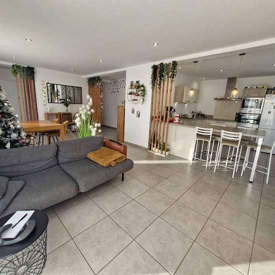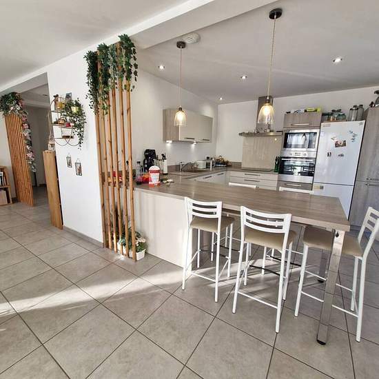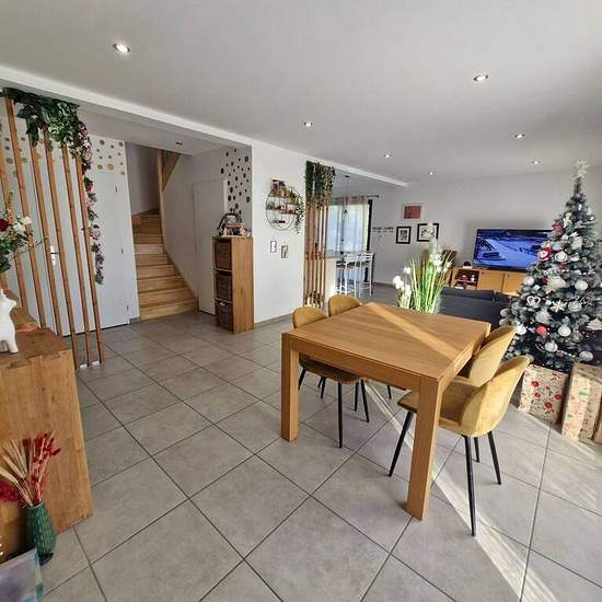 SAINT MARCEL BEL ACCUEIL, au calme, maison récente, lumineuse aux prestations soignées, 125m² habitable sur un terrain clos de 1 274m². Comprenant au rez-de-chaussée : une entrée avec placard, une pièce de vie de 46m² avec cuisine ouverte, donnant sur 2 terrasses, un cellier / buanderie, une chambre avec salle d'eau et toilette. A l'étage 3 chambres avec placards, une salle de bains et toilette. Garage, chauffage pompe à chaleur au sol sur chaque niveau, volets roulants électrique centralisé, adoucisseur d'eau. Travaux de la cour en cours de...