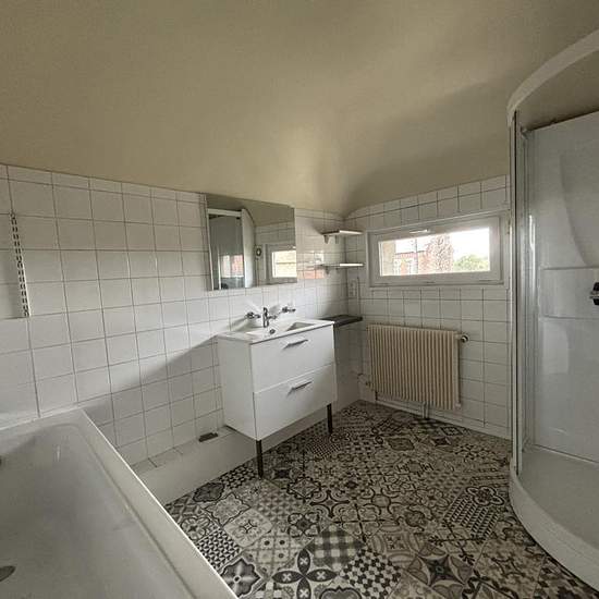 Saint-omer - maison de 118 m² avec jardin maison individuelle composée d'une entrée, un salon séjour spacieux, une cuisine aménagée, une chambre, une salle de douche et un wc séparé. À l'étage : un palier, deux chambres et une salle de bain avec une douche, une baignoire et un lavabo. + un grand jardin et une cave chauffage individuelle au gaz de ville dpe : e disponible de suite location pour une duree de deux ans, soit jusqu'en 2027 loyer mensuel hors charges : 1 006,99€ dépôt de garantie : 1 006,99€ honoraires de visite, constitution du d...