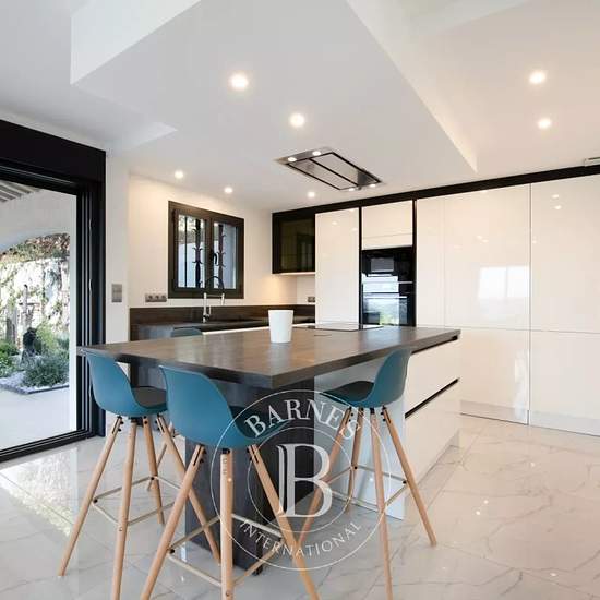 Located in a quiet setting on the Sainte-Maxime golf course, this modern 230 m² property offers an unobstructed view over the golf course as well as a sea view. The property comprises a fitted kitchen, a living room, a dining room and three bedrooms each with its own shower room. An annex with a bedroom, a shower room, a dressing room and a billiard area with two sofa beds. Amenities: Pool, Wi‑Fi, air conditioning. Show phone number