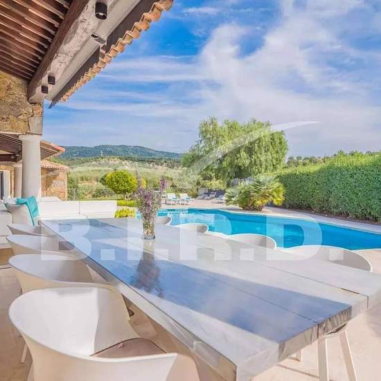 Nous vous proposons pour vos vacances, une magnifique villa de luxe avec piscine privée (chauffage en option) située à Sainte Maxime, sur la Côte d'Azur. Cette villa contemporaine et finement décorée offre un intérieur et extérieur particulièrement beaux, ainsi qu'une belle vue sur les collines et la piscine. Entièrement climatisée, elle peut accueillir jusqu'à 8 personnes dans ses 4 chambres avec 4 salles de bains/eau. Chaque chambre dispose d'un lit double : 2 lits de 160x200cm et 2 lits de 180x200cm et d'une salle de bains privative, offr...
