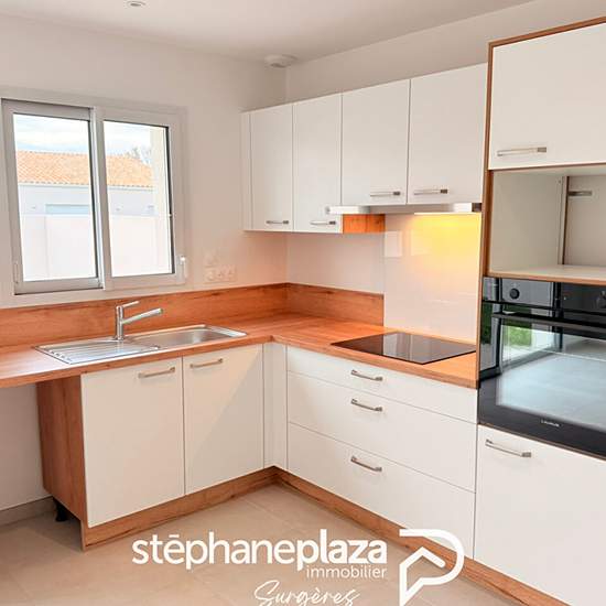 Votre Agence Stéphane Plaza immobilier vous propose cette magnifique maison neuve de plain-pied à Louer située à Surgères dans un lotissement. Avec sa surface de 79M² elle comprend : un grand séjour avec une cuisine aménagée / équipée, trois chambres, une salle d'eau, un WC. Les + : un garage carrelé et isolé, deux places de parking. Terrain clos. Climatisation réversible et chauffage au sol dans les chambres. Disponible à partir de mi novembre. Loyer : 1040€ Charges : 50€ (Entretien PAC / Entretien Ballon Thermodynamique / TOM) Dépôt de gar...