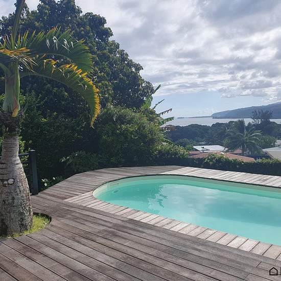 Maison à louer meublée T4 130m² vue mer avec piscine sur terrain de 1284 m² à Mitirapa Elle se compose de: - 1 salon séjour avec 1 coin bureau et rangements - 1 salon bibliothèque avec son coin de lecture - 1 cuisine équipée - 1 chambre climatisée avec sa télévision - 1 pièce attenante pouvant servir de bureau ou dressing - 2 chambres avec leur placard - 2 salles d'eau avec wc - 1 abris pour 2 voitures - 1 chauffe eau solaire - 1 sèche linge gaz Loyer: 235 000 cc avec eau, ordures ménagères et copropriété Frais d'agence: 132 775 xpf Dépôt de...