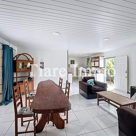 Maison à louer – Vairao Située à Vairao, cette maison sans vis-à-vis offre un cadre calme et agréable, idéal pour une famille. Elle dispose d’un grand salon / pièce à vivre, de 3 chambres, et de 2 salles de bain. Profitez également d’un chauffe-eau solaire, d’un jardin, ainsi que de deux portails offrant un double accès pratique depuis la route principale. Loyer : 150 000 F/mois – charges comprises (eau, ordures, éléctricité) Localisation : Vairao Maison disponible immédiatement. Un bien rare sur le secteur, à visiter sans tarder !