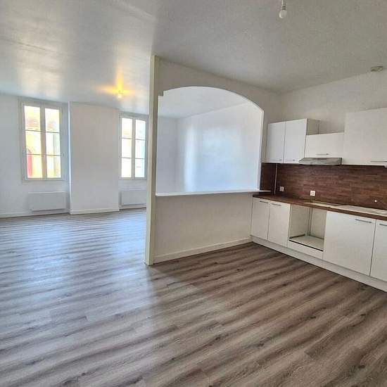 Maison À Louer. À louer au centre de Targon, proche des commodités, appartement de 80 m² sur deux niveaux. L’appartement se compose d’un grand salon avec cuisine partiellement ouverte, de deux chambres et d’un bureau avec vélux de 7,50 m². Entièrement rénové, il est disponible immédiatement.