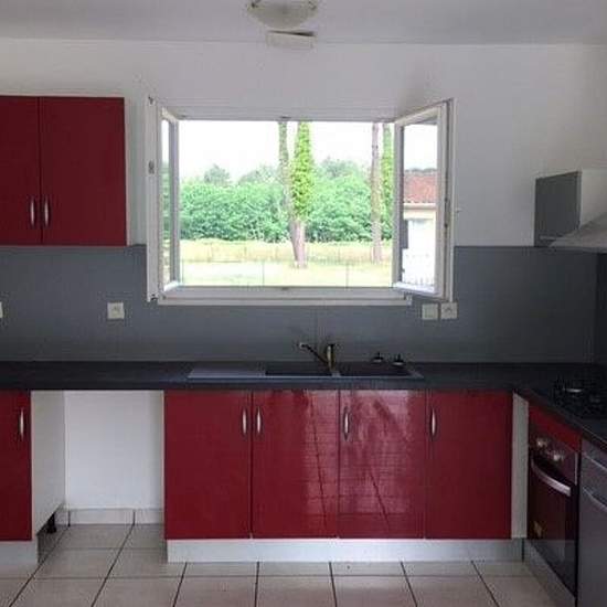 Maison F4. UCHACQ ET PARENTIS - Maison récente composée d'une entrée avec placard, séjour donnant sur terrasse, coin cuisine aménagée et équipée, 3 chambres, salle de d'eau, WC. Garage attenant. Clim Réversible - Terrain clos d'environ 1500 m2. Libre au 15 avril