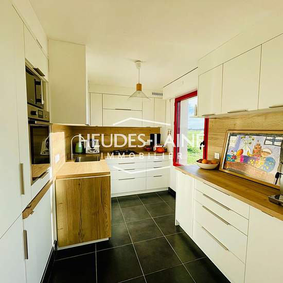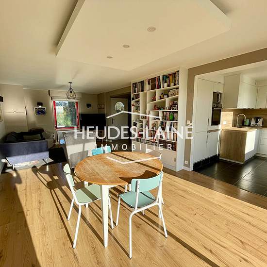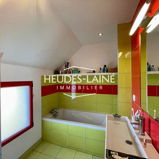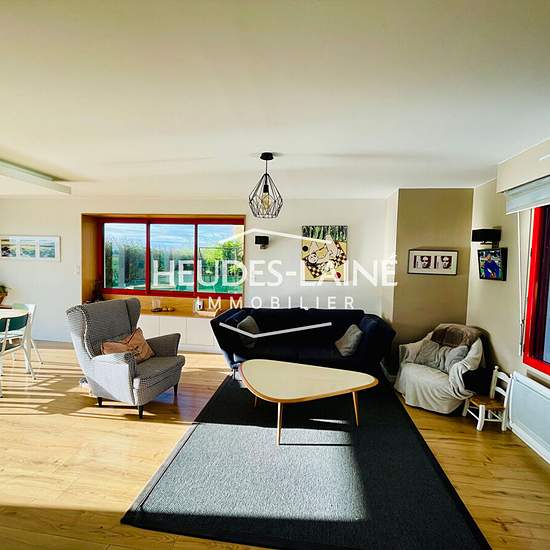 Une maison d'habitation de Type F.4/5, comprenant au rez-de-chaussée : séjour avec placards et coin cuisine aménagé et équipé (hotte, plaque électriques, four, réfrigérateur avec case congélation, lave-vaisselle), dégagement, placard de rangement, WC avec lave-mains, une chambre, buanderie. Au premier étage : dégagement avec dressing, deux chambres, un bureau, salle de bains avec baignoire et douche, WC. Cour, terrasse et jardin autour de la maison avec vue sur la Baie du Mont Saint Michel. Chauffage et chauffe-eau électriques. Eau et électr...