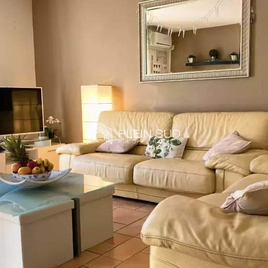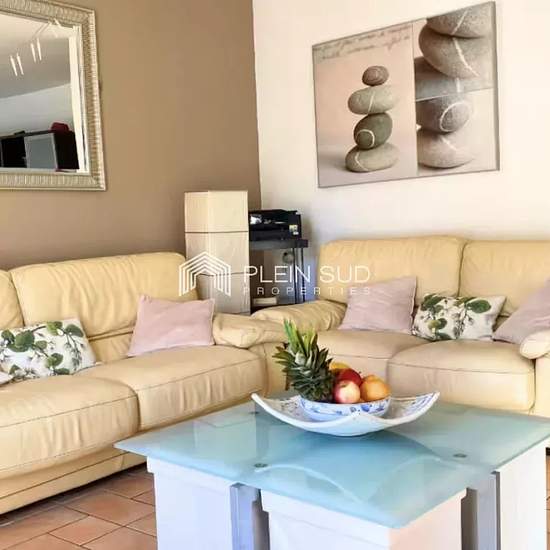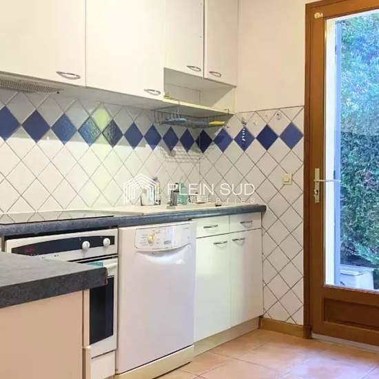Golfe-Juan – Dans un domaine fermé et sécurisé, au calme absolu, cette villa d'environ 100 m² se trouve à quelques pas des commerces et de la plage. Elle se compose de 3 chambres, 2 salles de bains et 2 toilettes, d'une cuisine équipée, d'un séjour lumineux ouvrant sur une belle terrasse avec piscine privée. Possibilité de stationner une à deux voitures devant la maison. Jardinier et pisciniste compris dans le prix. Location de Septembre à Juin ! Afficher le téléphone