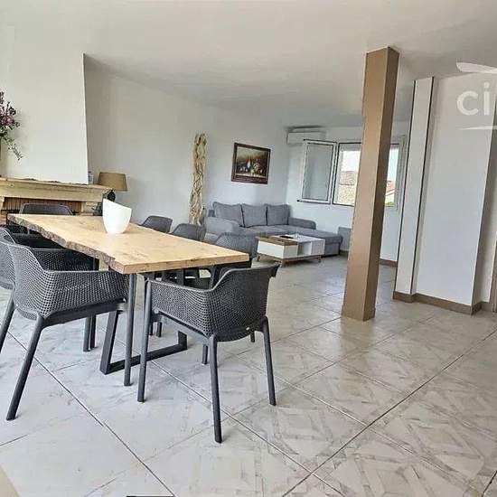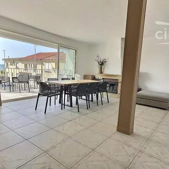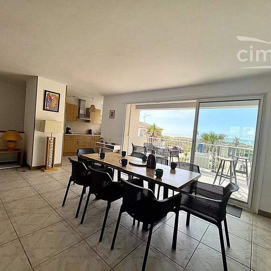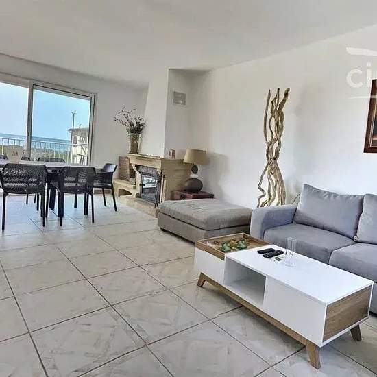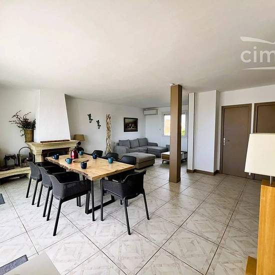 LOCATION SAISONNIERE: Pour 8 personnes cette maison est composée comme suit : Au rez-de-chaussée 3 chambres: une chambre avec lit double (140) climatisée et tv, une seconde chambre avec un lit superposé (90) climatisée, et une troisième chambre avec 2 lits en (90) climatisée, une salle d’eau avec douche et toilette, un hall d'entrée 11m² avec un canapé lit (140) et une terrasse ombragée de 28m² avec bbq au charbon de bois. A l’étage: Un salon avec canapé d'angle, télévision, internet, un coin repas avec une grande table en bois vue mer , une...