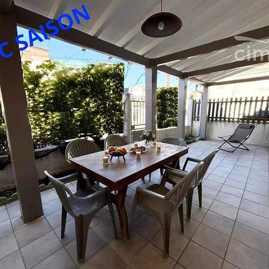LOCATION SAISONNIERE Profitez de vos vacances dans cette maison de 61m2 avec 2 terrasses couvertes, une située Est et la deuxième orientée sud ouest , équipée d'un barbecue à charbon de bois à 500m de la plage et en plein centre de Valras, idéal pour 6 personnes. Le logement est composé comme suit : Deux chambres, une avec lit double (160) et l'autre avec un lit en 140, une mezzanine surplombe le séjour avec un lit gigogne en 90 qui peut se mettre au même niveau que celui du haut pour faire un lit en 180cm, une salle de bain complète baignoi...