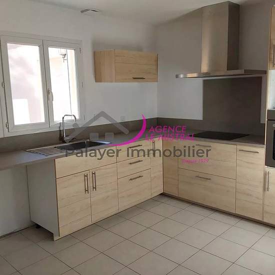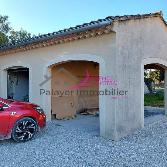 REF. 9421 VEDENE BELLE VILLA de plain pied avec un jardin clos par clôture et portail automatisé, Terrasse, garage et abri voiture, composée de : Entrée + dégagement, Séjour avec coin cuisine aménagée de meubles neufs et semi équipée, 4 Chambres avec placard dont une avec salle d'eau et wc privatifs, toilettes, Salle de Bains. Chauffage par PAC air/air, Cumulus électrique. Tout à l'égout. Eau de la ville. Eau par forage pour le jardin. LOYER 1445 € dont 45 € pour la taxe ordures ménagères, avec régularisation annuelle. Dépôt de garantie 1400...