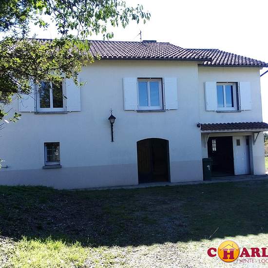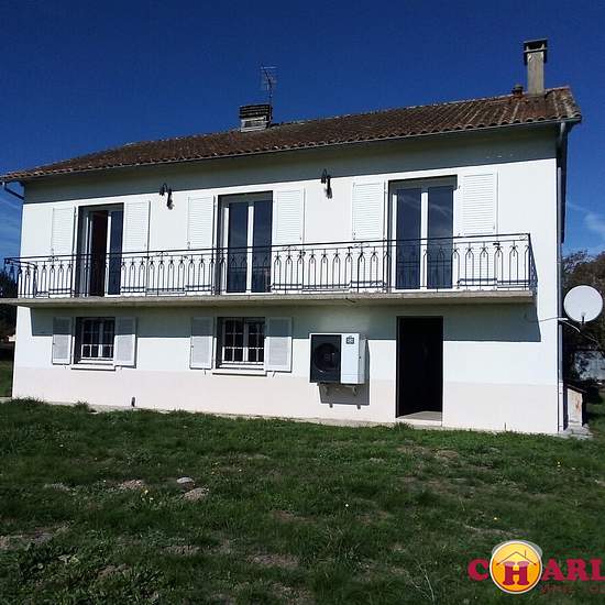 Cne de Veyrac ( sur le village de LA BARRE , axe ST JUNIEN- LIMOGES, 10 min St Junien) Grande maison familiale T4. Au rdc: grande entrée avec placards, cuisine d'été, garage et buanderie -atelier. WC A l'étage: cuisine NEUVE aménagée et équipée ( plaque et hotte), grand séjour avec Balcon ( exp SUD), 3 chambres dont deux avec placards, salle de bains ( douche et baignoire) WC. Chauffage: pompe à chaleur, fenêtres à l'étage en double vitrage( bonne isolation thermique) Grand terrain clos de 4000 M2 Maison en parfait ETAT, très lumineuse et au...