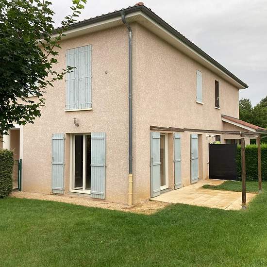 Maison de village mitoyenne T3 Bis de 69m² située dans un lotissement calme, sur les hauteurs de Vienne. Elle se compose d’une pièce de vie lumineuse avec coin cuisine ouverte sur une terrasse privative et jardin de 400 m² environ, des toilettes. A l'étage deux chambres, un bureau et une salle de bains avec WC. Un garage et une place de parking privative. Chauffage individuel gaz. Disponible mi-février. DPE en cours. LOYER HC : 910€ / mois. Honoraires de 728 € TTC à la charge du locataire comprenant 207 € TTC pour l'état des lieux. Loyer de ...