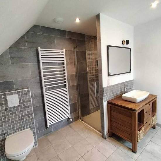 A louer Maison individuelle T4 d'une superficie de 120m2, située sur une parcelle de 8 ares bordée d'une rivière. Le logement est situé au cœur de Wingen-sur-Moder, à proximité des commerces (boulangerie, pizzeria, supermarché, etc...). Gare à 5 minutes à pieds (40 minutes de Strasbourg en TER). École maternelle, primaire et collège présents dans le village. La maison se compose de : -Rez de chaussé : Salon, Cuisine équipée (hotte, piano de cuisson, lave-vaisselle...), 1 Chambre coté Jardin, Toilette individuelle et Couloir d'entrée avec pla...