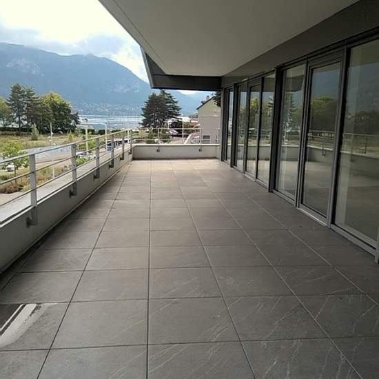 Dépôt de dossier obligatoire avant visite directement sur notre site internet (revenu exigé : 8373 EUR) ANNECY AVANT SCENE - Dans immeuble récent, T5 de 127 m² situé au 2ème étage composé d'une pièce principale de 53 m² avec cuisine aménagée (avec plaque cuisson et hotte) ouverte sur séjour, grande terrasse de 51 m² avec vue lac et terrasse de 15 m², quatres chambres dont une avec salle d'eau, salle de bains, wc séparés, dégagement avec placard, cave, deux garages. Chauffage et eau chaude collectifs. Disponible septembre