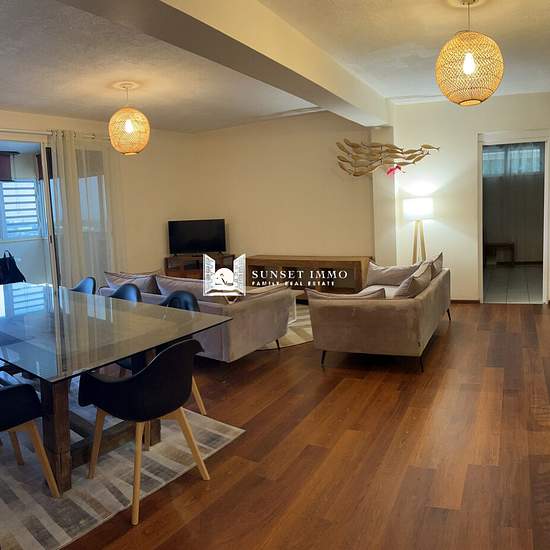SUNSET IMMO | À LOUER APPARTEMENT ARUE- F5 Dans une petite résidence de standing, sécurisée et calme, ce bel appartement atypique et lumineux d'une superficie de 190 m2, meublé, climatisé et équipé se compose de : - 4 chambres (dont une indépendante, 3 Salles d'eau avec w.c, 1 belle cuisine moderne aménagée et équipée, 1 Salon, 1 Salle à manger, 1 terrasse couverte aménagée en salon et salle a manger avec une jolie vue, 1 buanderie, 1 parking fermé (2 véhicules), chauffe-eau-solaire et fibre installée. Bien situé, proche de la ville et des c...