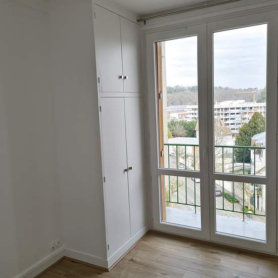 AVON - quartier du Carrefour Market : à proximité des commerces, supermarché, parc du Château et gare, au 6ème étage avec ascenseur de la résidence Les Ruches, un appartement de 5 pièces d'environ 67m2, comprenant : entrée sur dégagement desservant cuisine ouverte contemporaine aménagée fonctionnelle et semi-équipée (hotte et plaque vitro) sur séjour lumineux et vue dégagée, 3 chambres (dont une plus petite/bureau) avec placards, salle de bains et wc séparé. Eau chaude et froide + chauffage collectifs (compris dans les charges). Loué avec un...