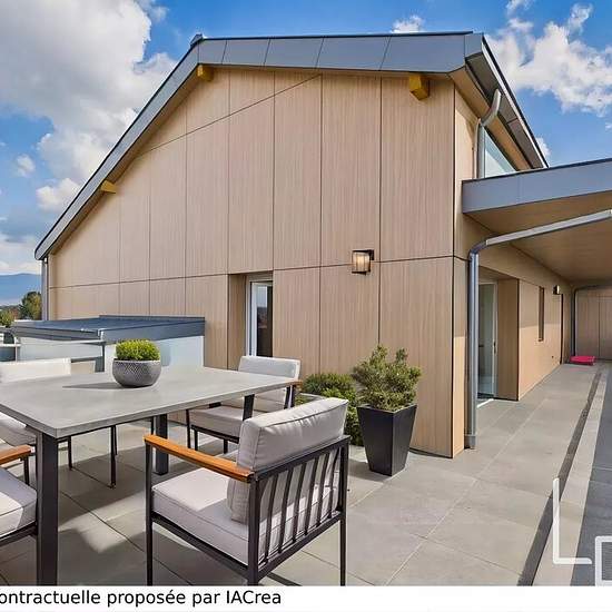 Magnifique appartement meublé de 105 m² situé au dernier étage d'une résidence moderne en plein centre de Bons en Chablais. Les plus de ce logement : Vue dégagée et luminosité exceptionnelle Grande terrasse de 48 m² exposée Sud/Ouest 4 chambres spacieuses Salle de bain + salle de douche + 2 WC 2 places de parking incluses au sous-sol Gare à 5 minutes à pied (Léman Express) Informations pratiques : Charges de copropriété : environ 130 €/mois Estimation des charges énergétiques : 109€ à 148€/mois Classe énergétique : C (105 kWhEP/m².an) Locali...