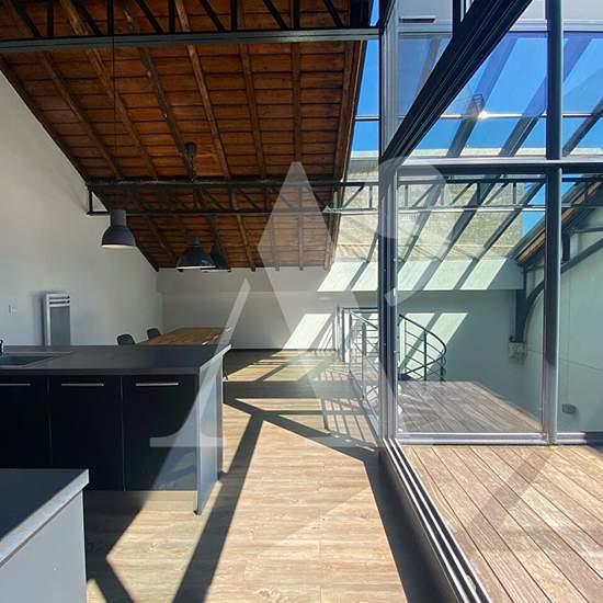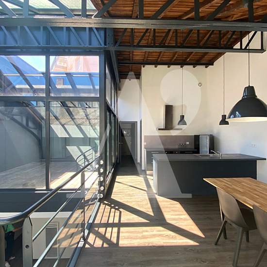 Just steps from Parc Rivière, this 121 m² duplex loft located in a former workshop features a large living space on the ground floor beneath a glass roof, a master suite with bathroom, a toilet and a utility room. Upstairs, an equipped open kitchen opening onto a dining room and two bedrooms are arranged around a sunny patio with no overlooking neighbors. A bathroom and a toilet complete this level. The combination of stone, steel and glass makes it a resolutely contemporary space. A secure parking space and a bicycle storage room complete t...