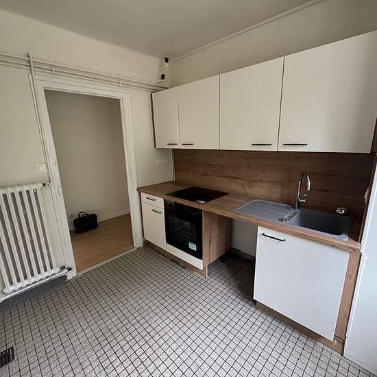 CAEN, 112 rue de Geôle, à côté du Château, nous vous proposons un beau F5 de 93.81m² situé au 1er étage avec une vue imprenable sur un parc arboré. Il se compose d'une entrée, un séjour, un salon, une cuisine aménagée et équipée (plaque de cuisson et four), 3 chambres, un bureau, une salle de douche et wc. Une cave et un grenier complètent ce bien. La résidence dispose d'un parking collectif. Libre à la location. Loyer CC: 1440Euro (dont 140Euro de provisions pour charges avec régularisation annuelle) Dépôt de garantie: 1380Euro Honoraires c...