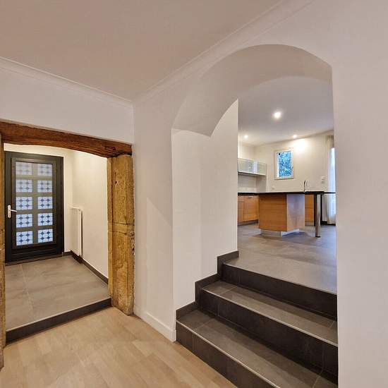 Cd immobilier sas vous présente en exclusivité à cailloux-sur-fontaines, ce très bel appartement de 107 m² de plain pied avec terrasse et parking. Il dispose d'une large pièce de vie équipée de son poêle à bois pour des moments cocoonings, d'une cuisine entièrement aménagée et équipée, et d'un espace séjour indépendant généreux. Ce t5 bénéficie de deux chambres, d'une suite parentale avec salle d'eau, d'une salle de bains et d'un wc séparé. Une buanderie cellier contigüe à la cuisine permettra un aménagement optimisé. Une place de stationnem...