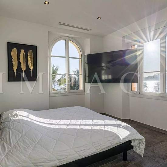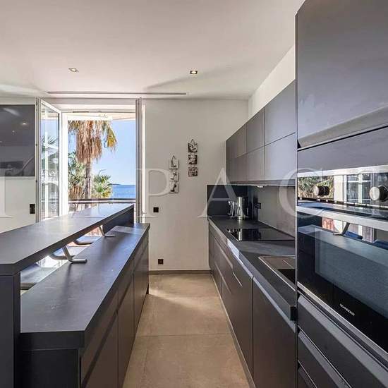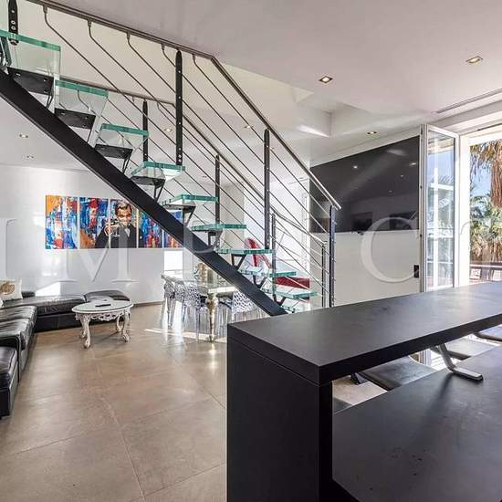 Location saisonnière - Penthouse rénové front de mer Installé dans une ancienne maison de maître à moins de 10 minutes à pied du Palais des Congrès et de la Croisette, splendide penthouse 122 m² situé face aux plages. Descriptif Spacieux et lumineux séjour s'ouvrant sur la mer. Cuisine ouverte entièrement équipée, donnant sur la mer. Chambre n°1 : 2 lits simples, dressing, télévision, salle de douche, toilette. Chambre n°2 : 2 lits simples, dressing, télévision, salle de douche, toilette. Chambre n°3 : 2 lits simples, dressing, télévision, s...