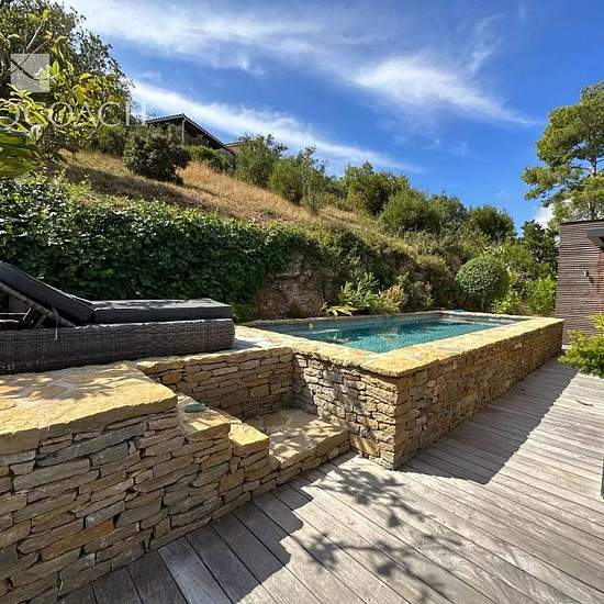 Perchée à flanc de colline, cette villa contemporaine vous offre une vue spectaculaire sur la rade de Toulon et les Îles d'Or. Un havre de paix où la lumière naturelle inonde chaque espace, créant une atmosphère sereine et apaisante. L'intérieur marie avec élégance le design graphique et le confort moderne. Les volumes généreux et les espaces de vie fluides s'ouvrent sur l'extérieur, effaçant la frontière entre dedans et dehors pour une expérience de vie méditerranéenne authentique. La terrasse panoramique devient le cœur de la maison, offra...