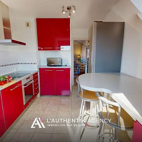 Disponible immédiatement ce magnifique duplex décoré et meublé avec goût par une décoratrice d’intérieur séduit par ses volumes sa luminosité et son confort. Situé au dernier étage d’une résidence récente avec ascenseur, il offre un vaste séjour avec accès à une terrasse sans vis à vis, une cuisine aménagée et équipée, deux chambres, une salle de bain et un WC séparé. À l’étage, un dressing, une suite parentale avec une salle d’eau privative et une mezzanine avec coin bureau. À 300 m de la gare proche des commerces et écoles. Un garage et un...