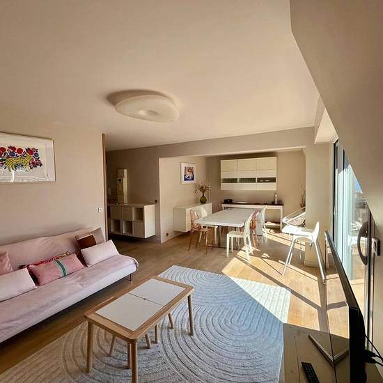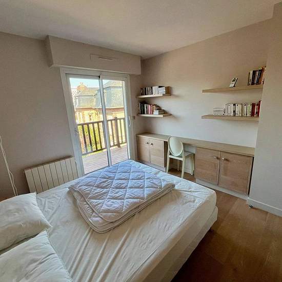 Magnifique appartement d'environ 100 m2, en accès direct plage et en plein centre ville, situé au 3ème étage avec ascenseur, comprenant une entrée distribuant une cuisine aménagée et équipée, une suite parentale (lit 160) avec une salle de douche et accès balcon vue mer, wc, une spacieuse pièce de vie avec accès balcon vue mer, à l'étage, une chambre (lit 140), wc, une salle de douche et deux chambres communicantes avec chacune deux lits simples (80). Place de parking en sous sol. Faire vite !