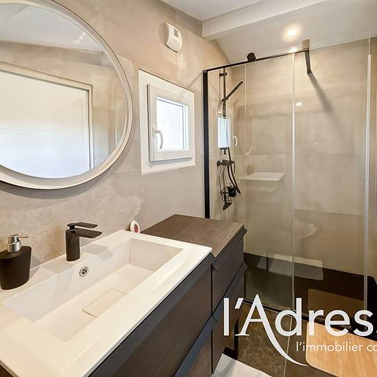 À La Ciotat, à proximité immédiate des calanques du Mugel, ce haut de villa meublé disponible à l'année offre 108 m² habitables (120 m² au sol), une exposition plein sud et une vue exceptionnelle sur les calanques. Le jardin privatif d'environ 150 m² permet de profiter d'une cuisine d'été et d'un jacuzzi pour des moments de détente privilégiés. Le premier niveau se compose d'une vaste pièce de vie d'environ 50 m² avec une cuisine américaine ouverte sur le salon-séjour, d'un WC indépendant et d'une suite parentale avec salle d'eau. À l'étage,...