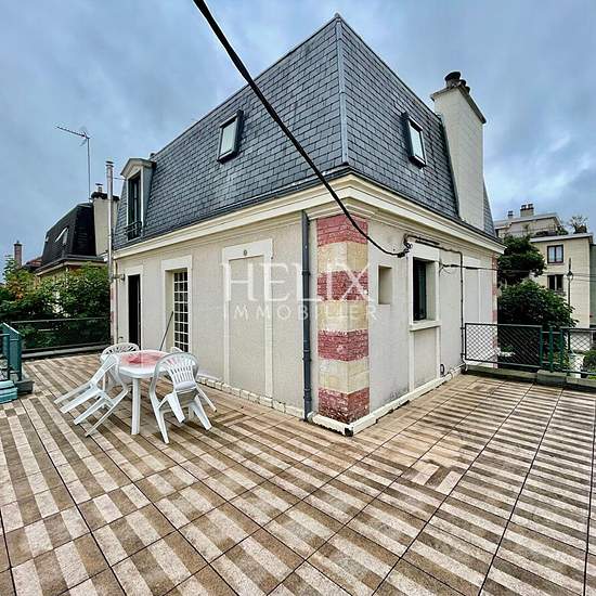 Le Vésinet Centre Ville, charmant appartement meublé en duplex situé au 1er étage d'une jolie maison bourgeoise. Bien aménagé et joliment décoré, ce 5 pièces d'une surface de 85 m2 offre au premier niveau une entrée, un double séjour lumineux , une cuisine aménagée et tout équipée donnant accès a une agréable terrasse de 47 m2, ainsi qu'une salle d'eau. A l'étage, l'espace nuit offre 2 belles chambres, un dressing, un bureau, et une salle salle de bain. Proximité immédiate des commerces, écoles, et gare RER le Vésinet Centre a 5 min a pied. ...