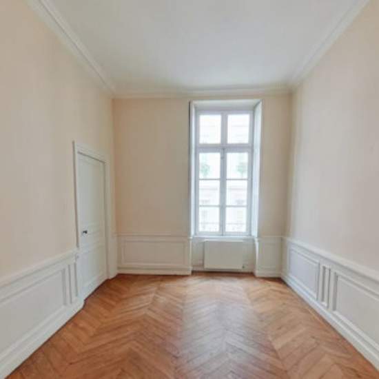 La régie Galyo à le plaisir de vous présenter ce beau 5 pièces de 140m² situé proche de la place Bellecour, des transports en communs et de toutes commodités. Au 3ème étage, d'un immeuble situé rue du plat, il se compose d'une entrée, d'un séjour ouvert sur une cuisine aménagée (meubles hauts et bas), de 4 chambres avec cheminées décoratives, d'une salle de bain, d'une salle d'eau et d'un wc séparés. Vous serez séduit par son parquet remarquable et ses belles cheminées décoratives. Un box fermé accessible depuis la cour est à louer impérativ...