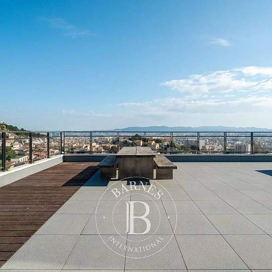 Au dernier étage d’une résidence réputée, à proximité immédiate du très prisé quartier du Roucas-Blanc, cet appartement d’exception de 210 m², bénéficiant d’une vue panoramique spectaculaire et d’une terrasse de 214 m². Ce bien rare se vit comme une véritable maison posée sur le toit, offrant une expérience unique et un art de vivre incomparable au cœur de Marseille. CÔTÉ JOUR L’accès à l’appartement s’effectue directement depuis l’ascenseur avec arrivée privative. L’espace de réception, d’environ 100 m², se compose d’un double salon, d’une ...