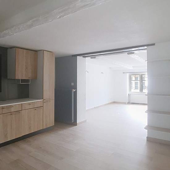 MONTBELIARD : Loue bel appartement au centre ville ( place de la LIZAINE) dans monopropriété au dernier étage. Cet appartement a été entièrement rénové et se compose : - 1er niveau : entrée, cuisine équipée ouverte sur séjour, une chambre, une salle de bain et un wc séparé. - 2eme niveau : une chambre avec nombreux rangements, un Wc séparé, une salle de bain et une autre chambre avec dressing. - 3eme niveau : une pièce pouvant se servir de chambre, coin bureau. Appartement coup de coeur. La disposition de cet appartement permet la vie en col...